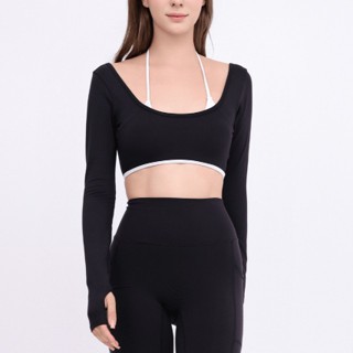 aeyo | Bộ đồ tập yoga gym pilates nữ, áo bra phối màu tay dài, quần đùi ôm sát tôn dáng BLISS